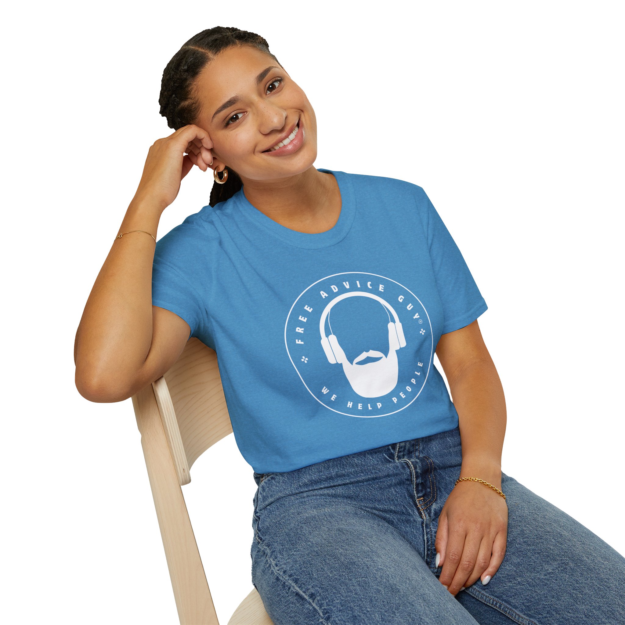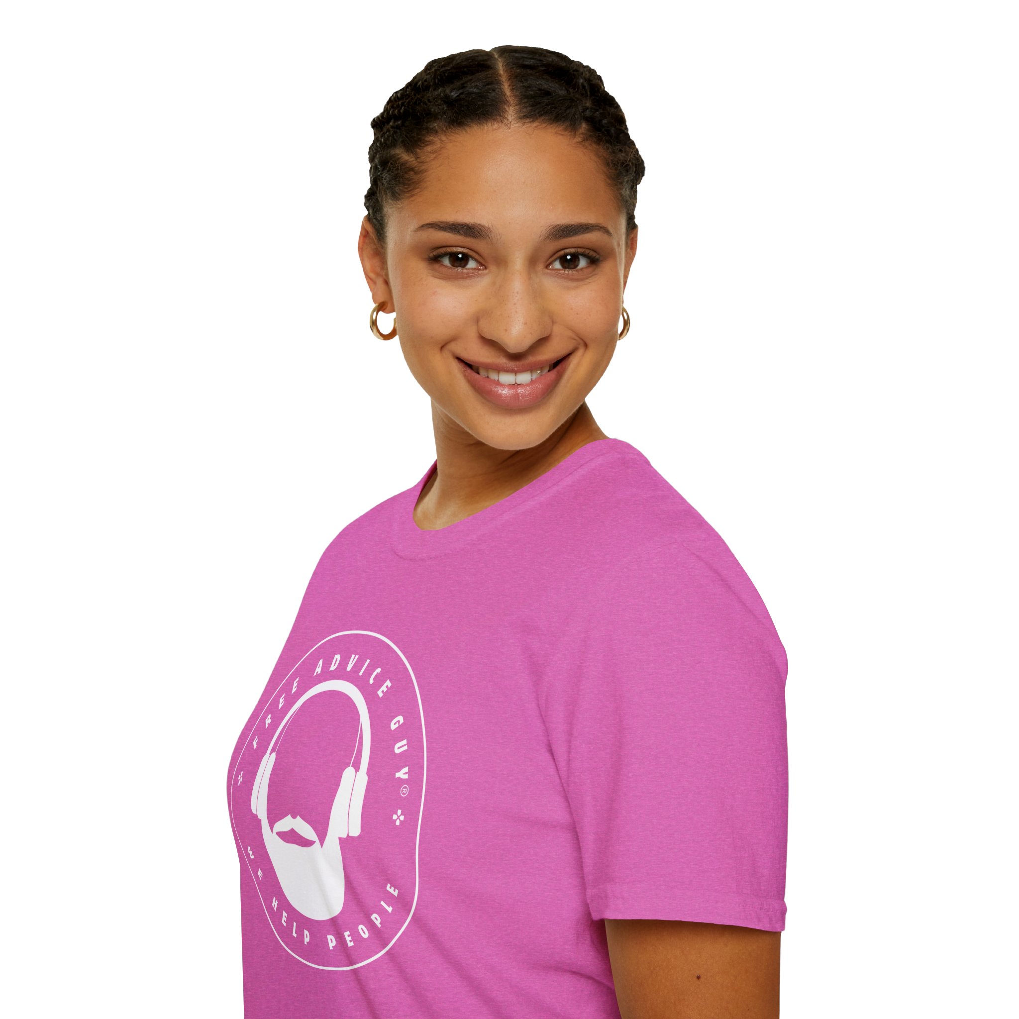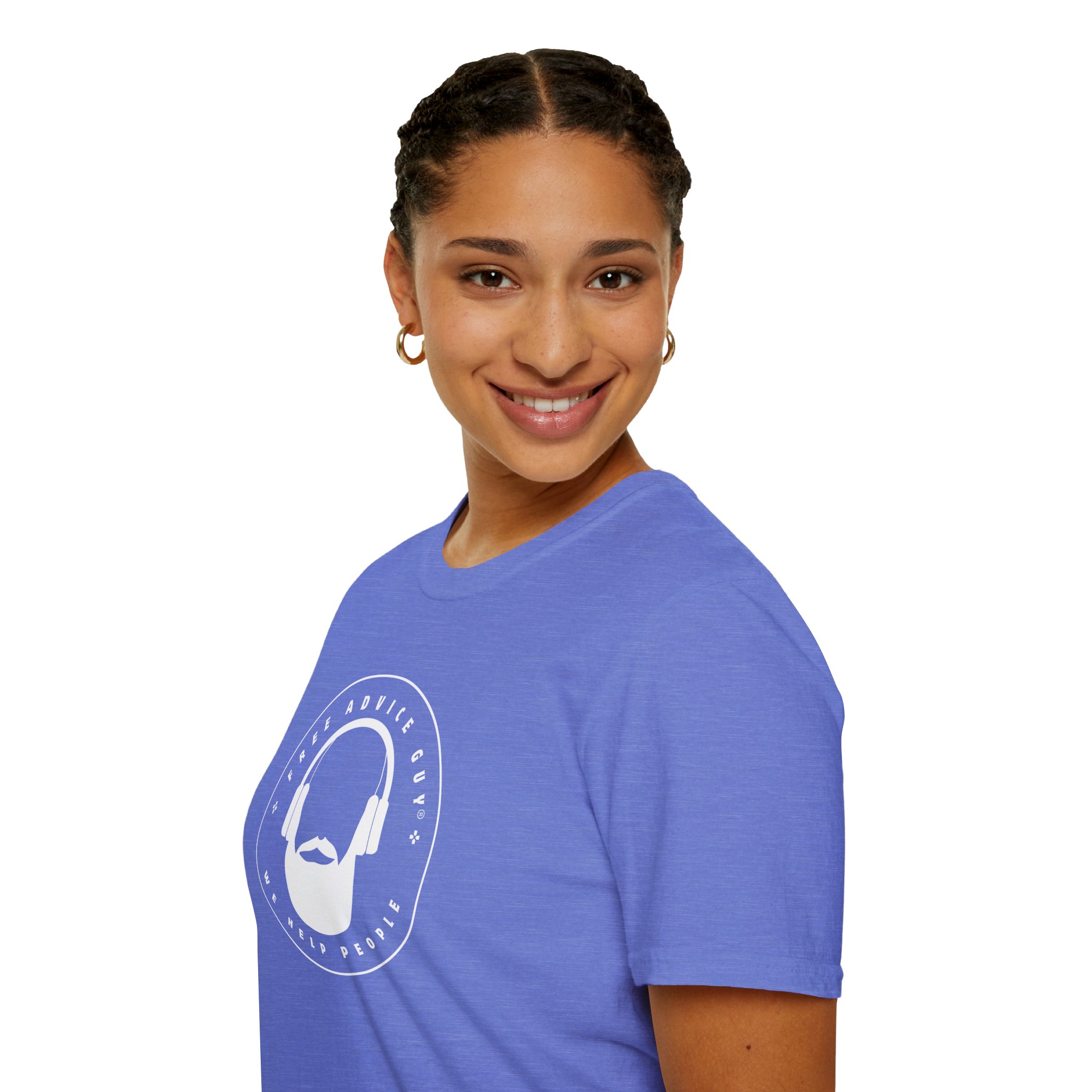 Be the first to review “Softstyle Unisex T-Shirt White Free Advice Guy Logo”